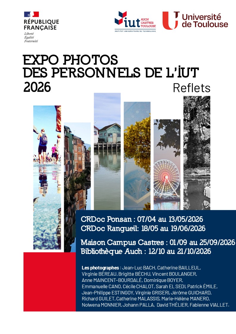 Pour sa 9e édition, l'exposition photos des personnels porte sur le thème « Reflets » : venez découvrir les photographies dans les bibliothèques des campus de l'IUT !